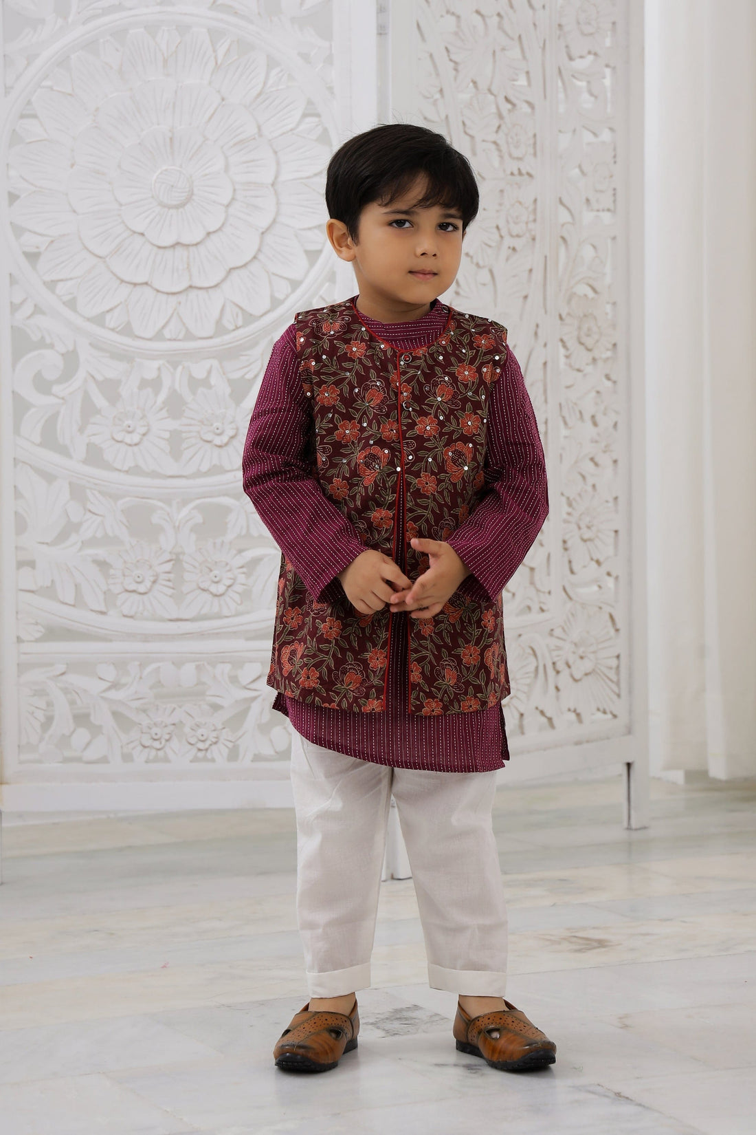 Our boys long kurta is made with 100% pure cotton cambric and has a Chinese...