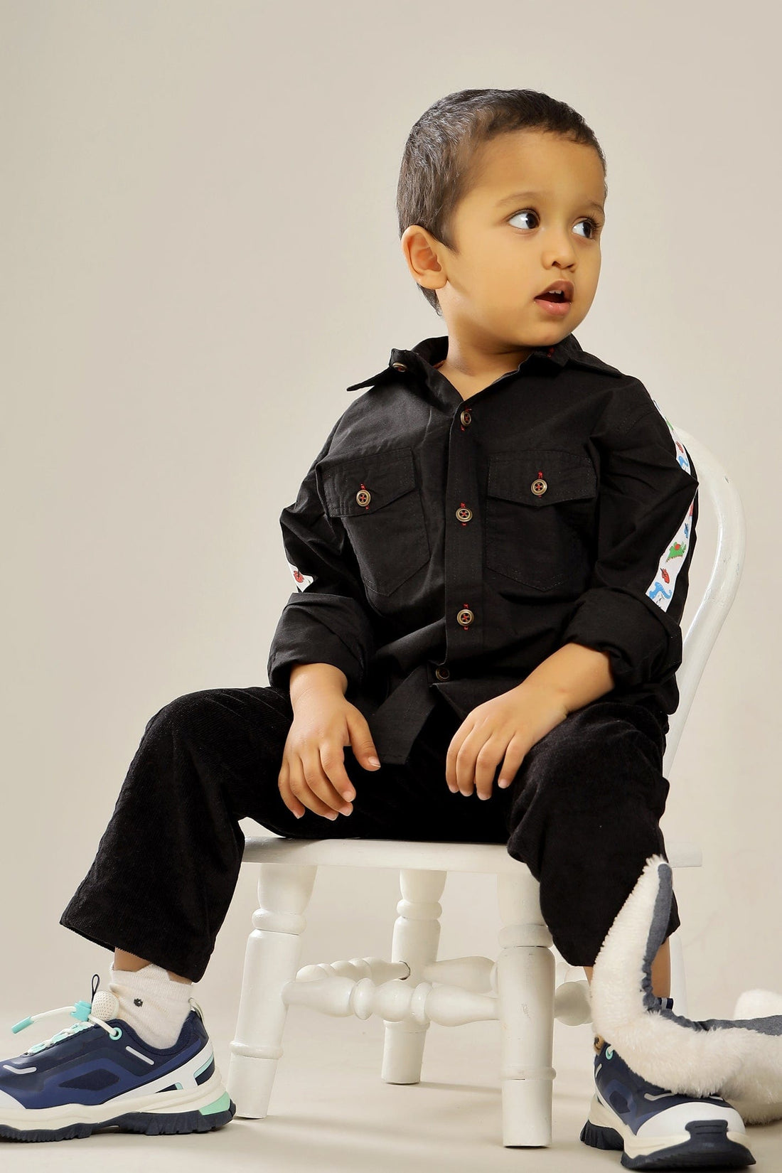 This Black Dino Land Shirt is made from pure cotton poplin, which makes it soft...