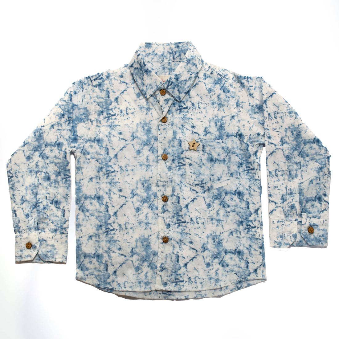 Blue and white Shibori print Kids Wear full sleeves cotton shirt