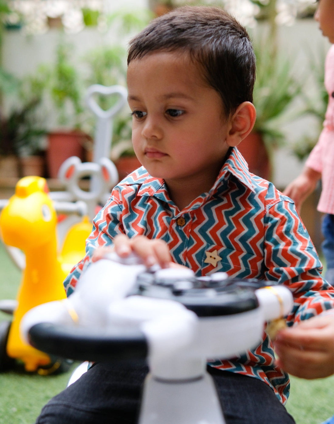 This peach-colored half sleeves shirt is the perfect casual shirt for your toddler. The vine...
