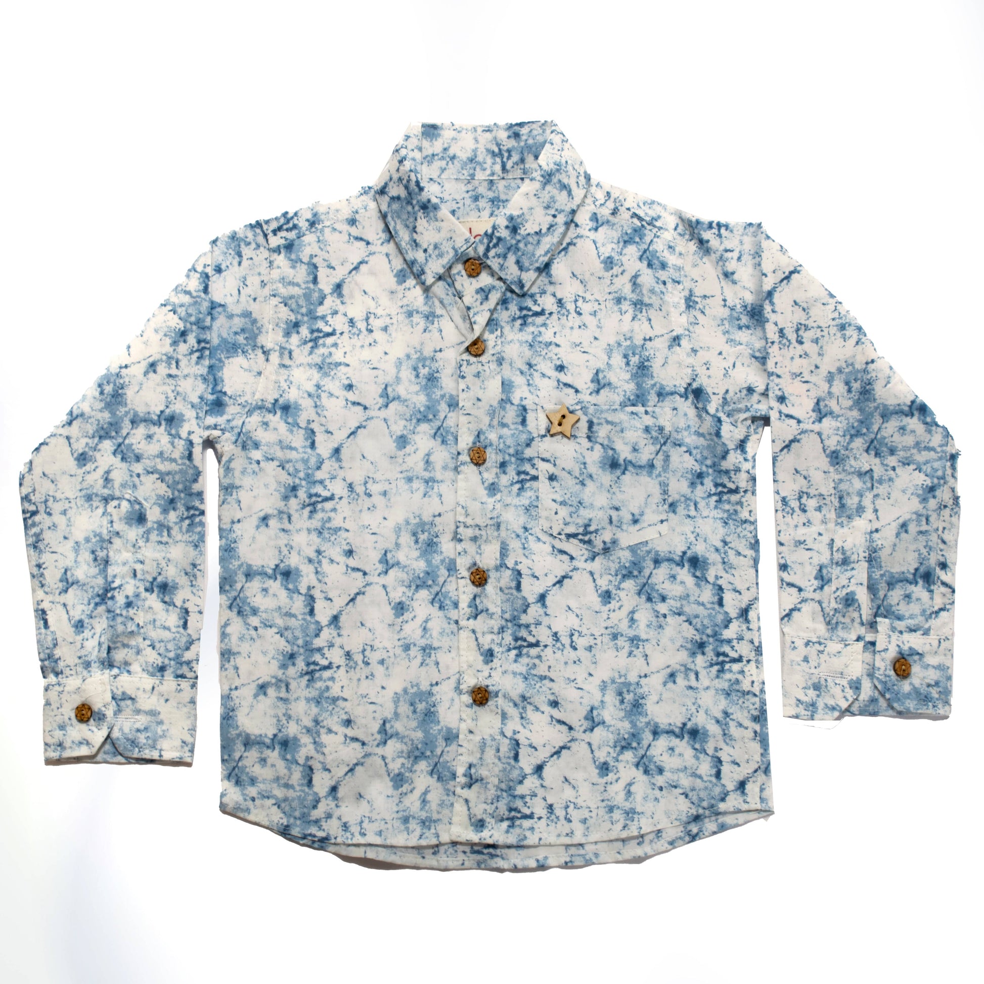 Blue and white is the ultimate combination to add a bright hue to your child's wardrobe. This Shibori print full sleeves cotton shirt is a unique and stylish choice for kids clothing, adding a touch of creativity and beauty to kids’ outfits. It can be paired with a range of bottoms, including shorts, jeans, chinos and trousers. This comfortable piece of cotton clothing offers your child a relaxed and comfortable look for parties and all occasions.
