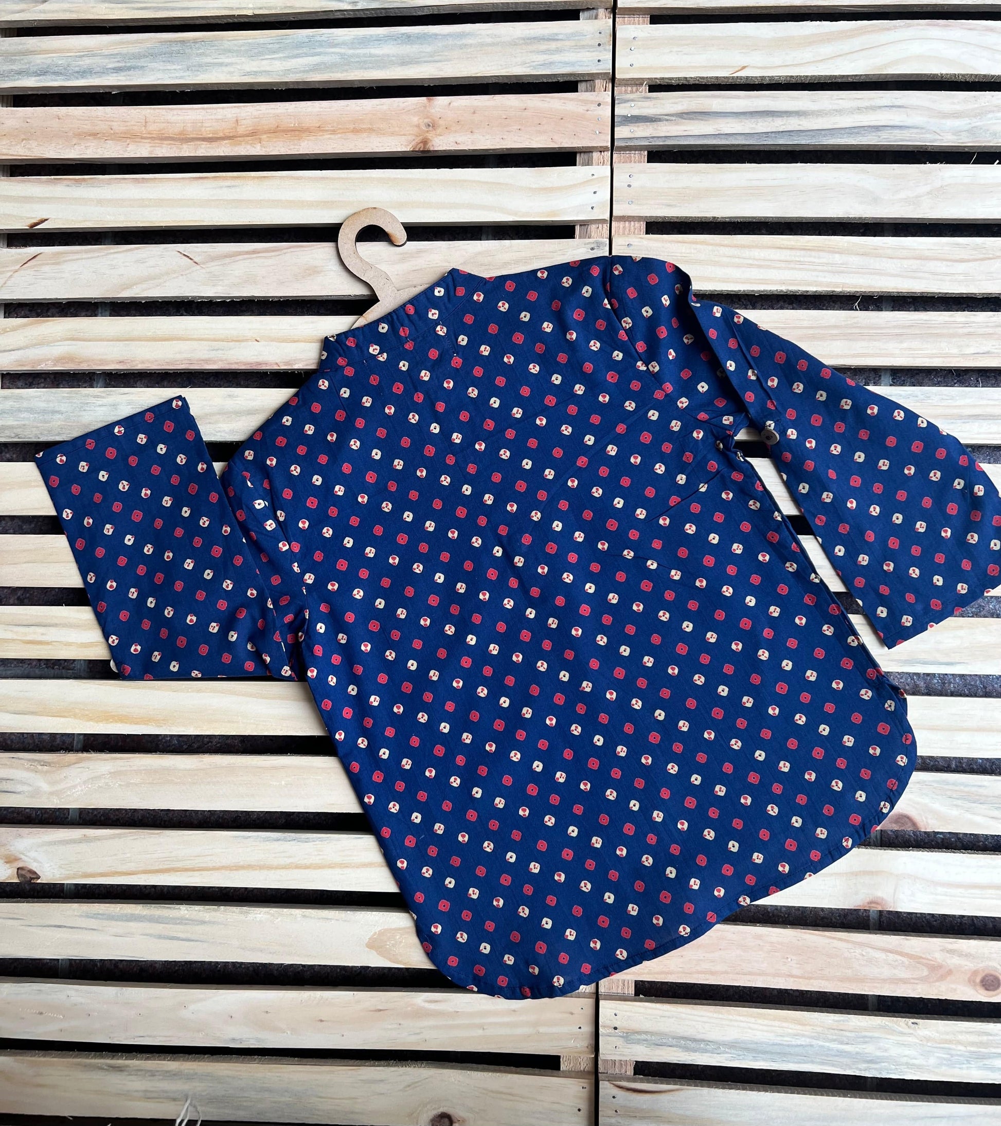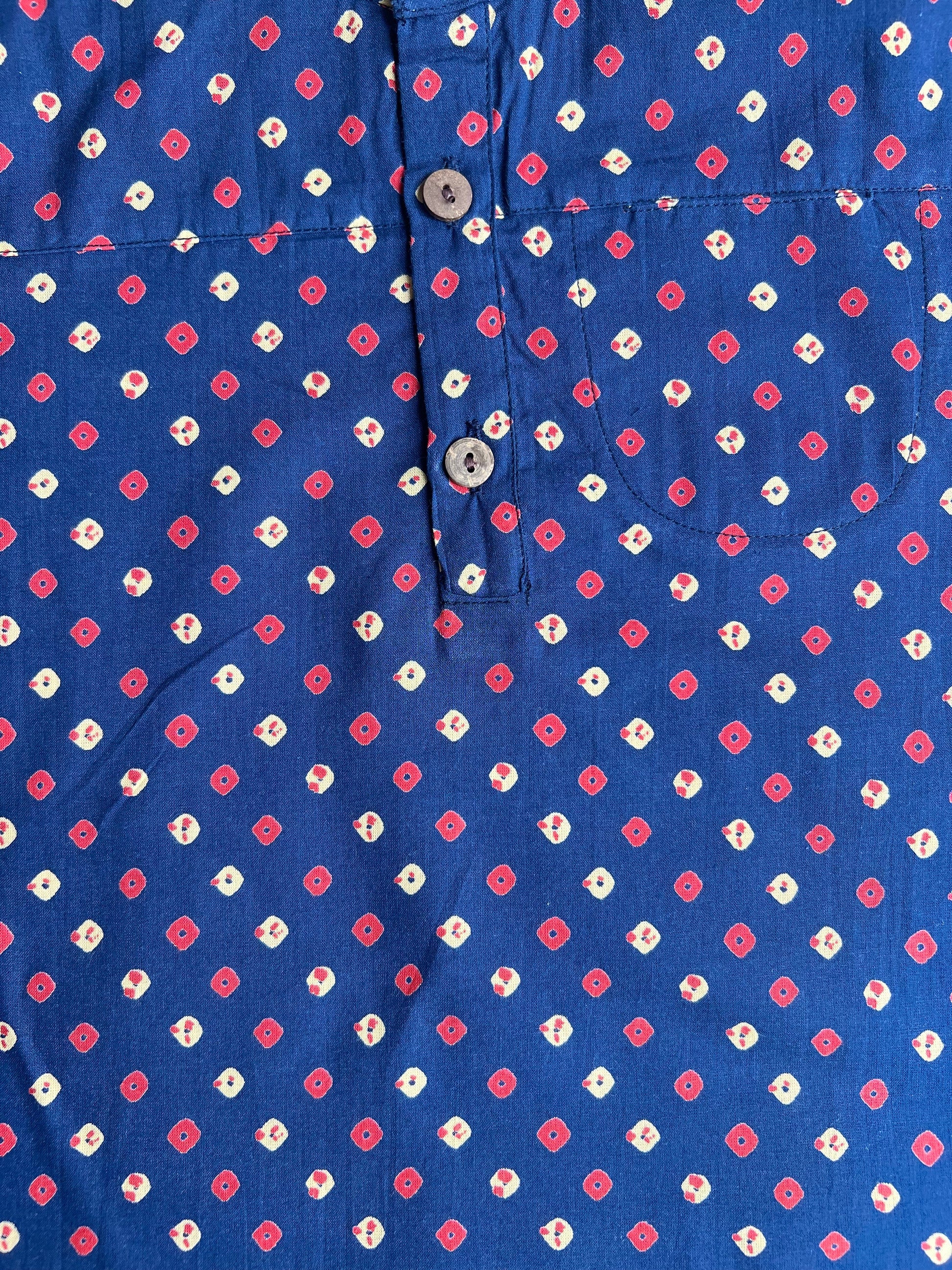 This shirt kurta with bandhej print is a must buy for your little one. It is stylish and elegant as well as comfortable and breathable at the same time. It’s gonna be your toddler’s favourite wear.