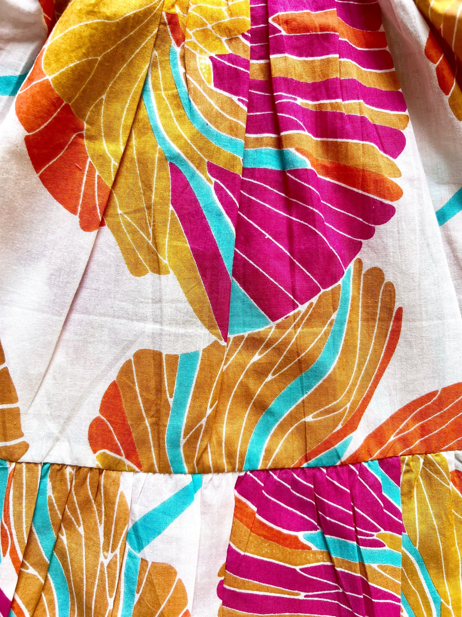 This classic pinafore dress is a cute addition to your wardrobe. The cotton cambric fabric keeps you cool, comfortable and chic. Made from cotton and straps with knots give this dress its one-of-a-kind look.