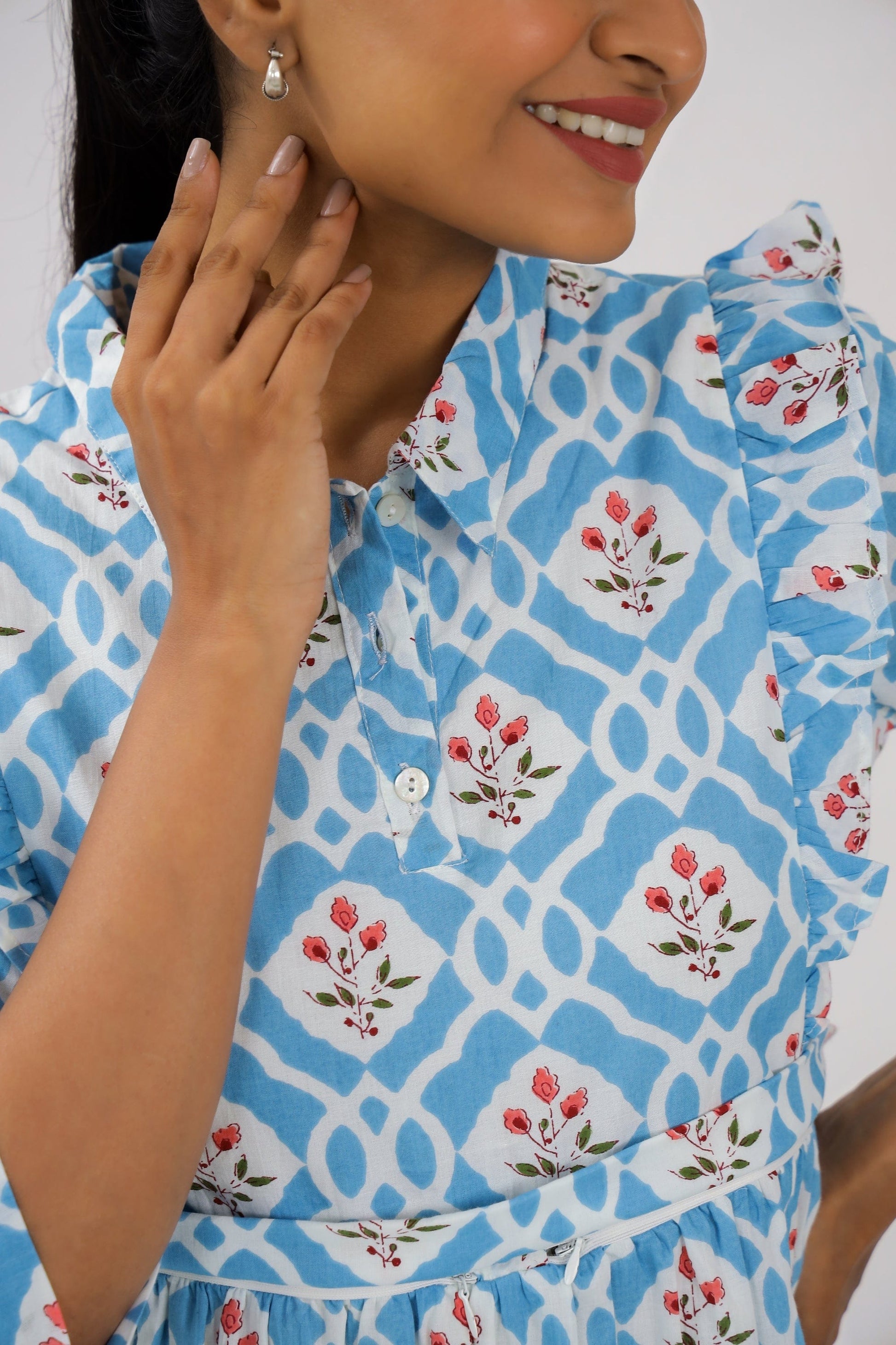 This cool Floral Sky Maternity Feeding Dress is a versatile and stylish garment designed to provide utmost comfort and convenience to expectant and nursing mothers. Crafted with care and attention to detail, this dress combines functionality with fashion, allowing mothers to feel confident and beautiful during their maternity and breastfeeding journey. The zippers provide easy and discreet access for breastfeeding that allows the mother to unzip or open a specific portion of the dress to access the breast without exposing too much skin, making it a practical choice for mothers who value convenience without compromising on fashion