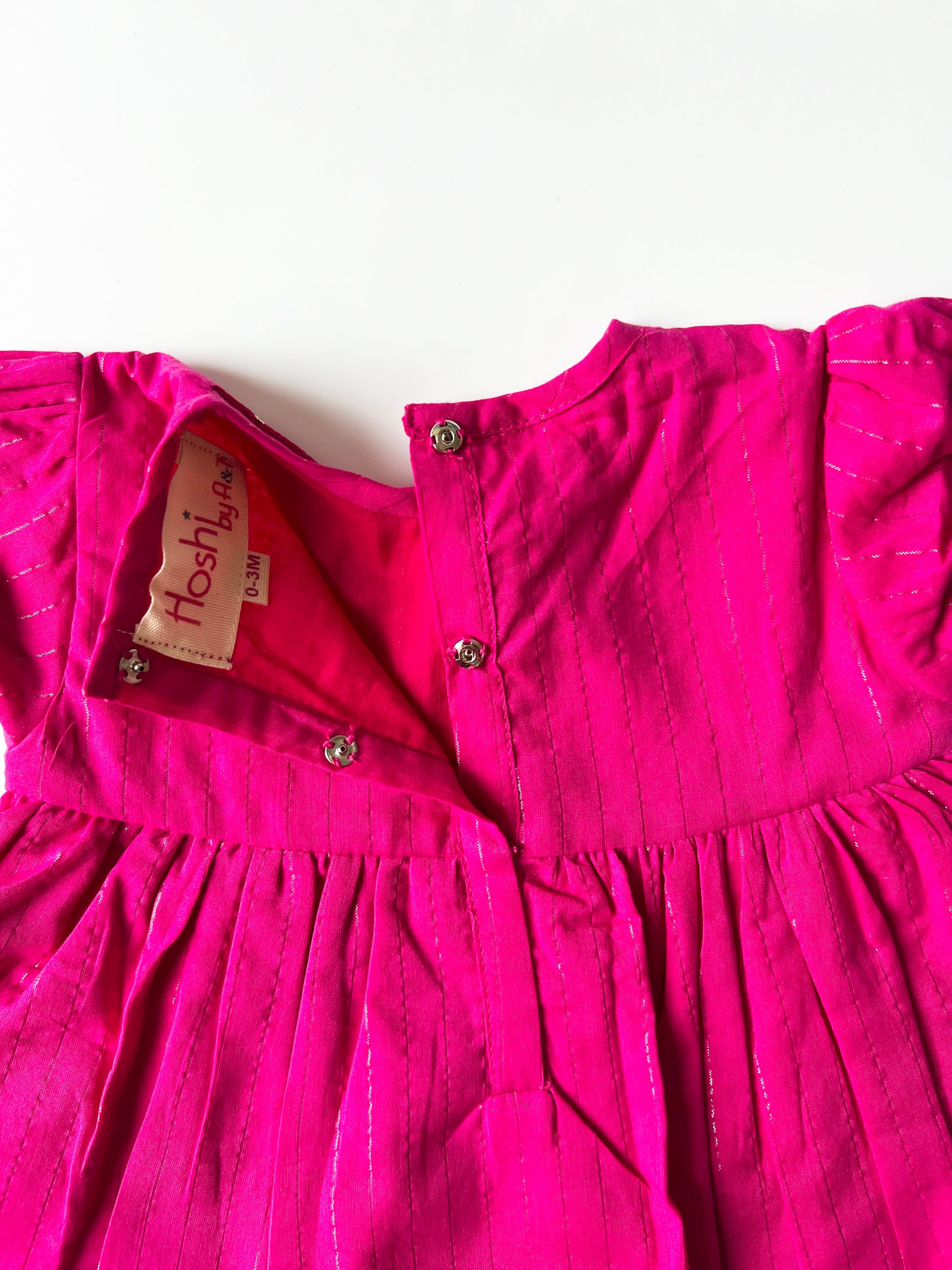 Wrap your little gentle being in the softest embrace of luxury with Hoshi by A&T's latest newborn wear collection. Thoughtfully crafted for delicate newborn skin, this set is made of 100% pure cotton lurex, enhanced with a breathable mulmul lining to ensure ultimate comfort.