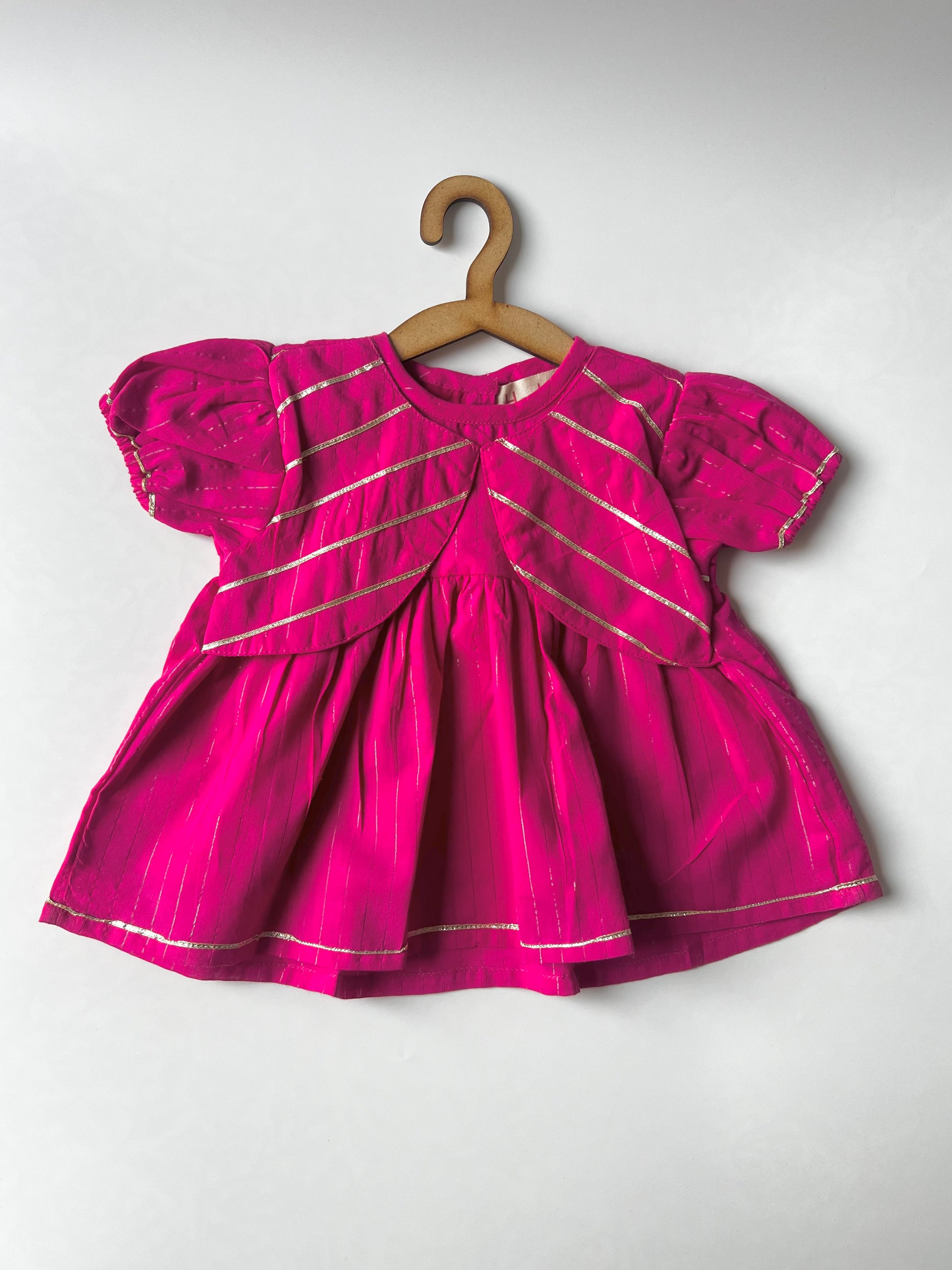 - A matching bottom, designed with a mulmul lining and adorned with exquisite Gota Patti work, blending style with ease of movement for your little one.