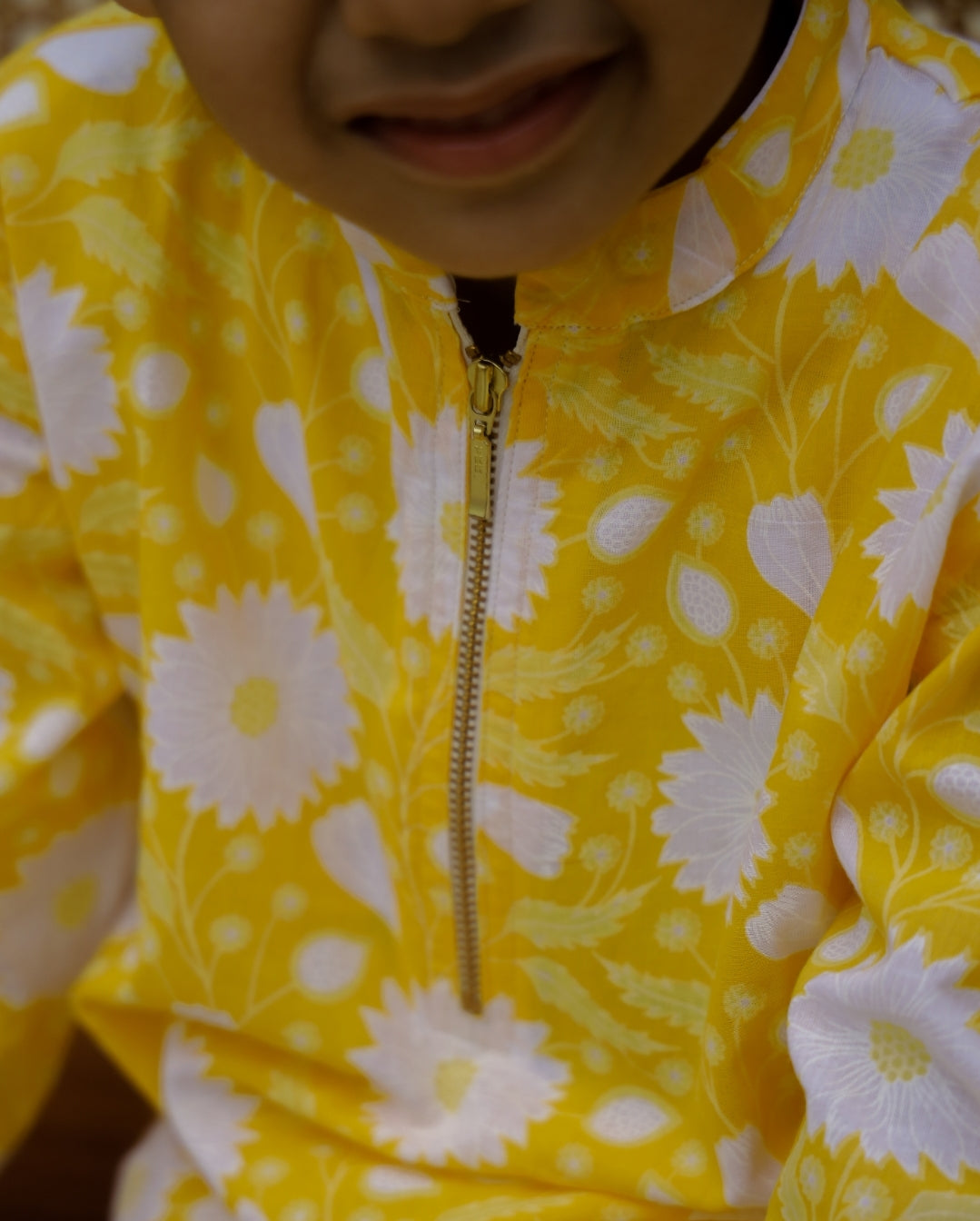 Add a splash of sunshine to your child's wardrobe with the Surajmukhi Kurta Set, where comfort meets vibrant style, exclusively from Hoshi by A&T.