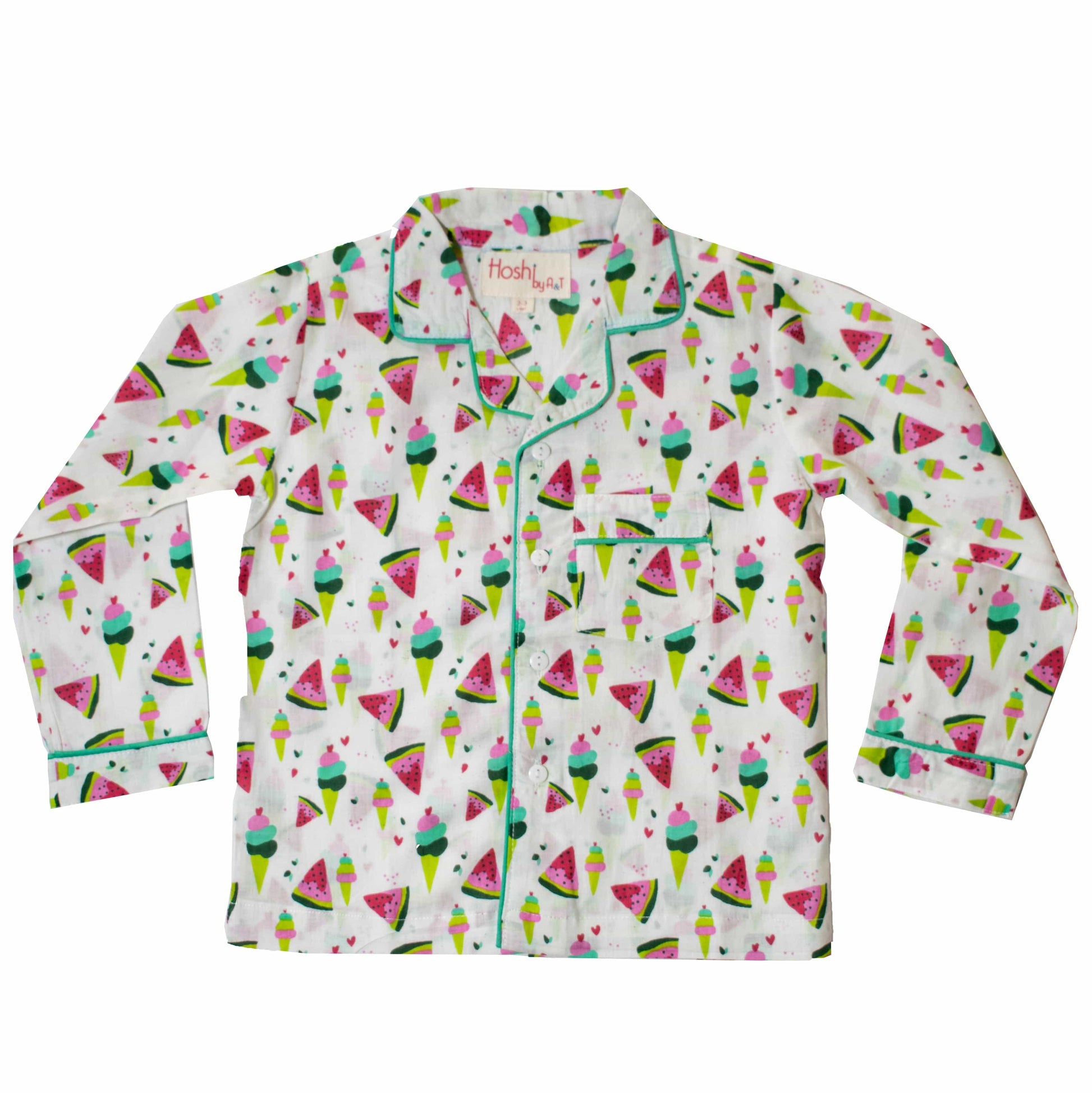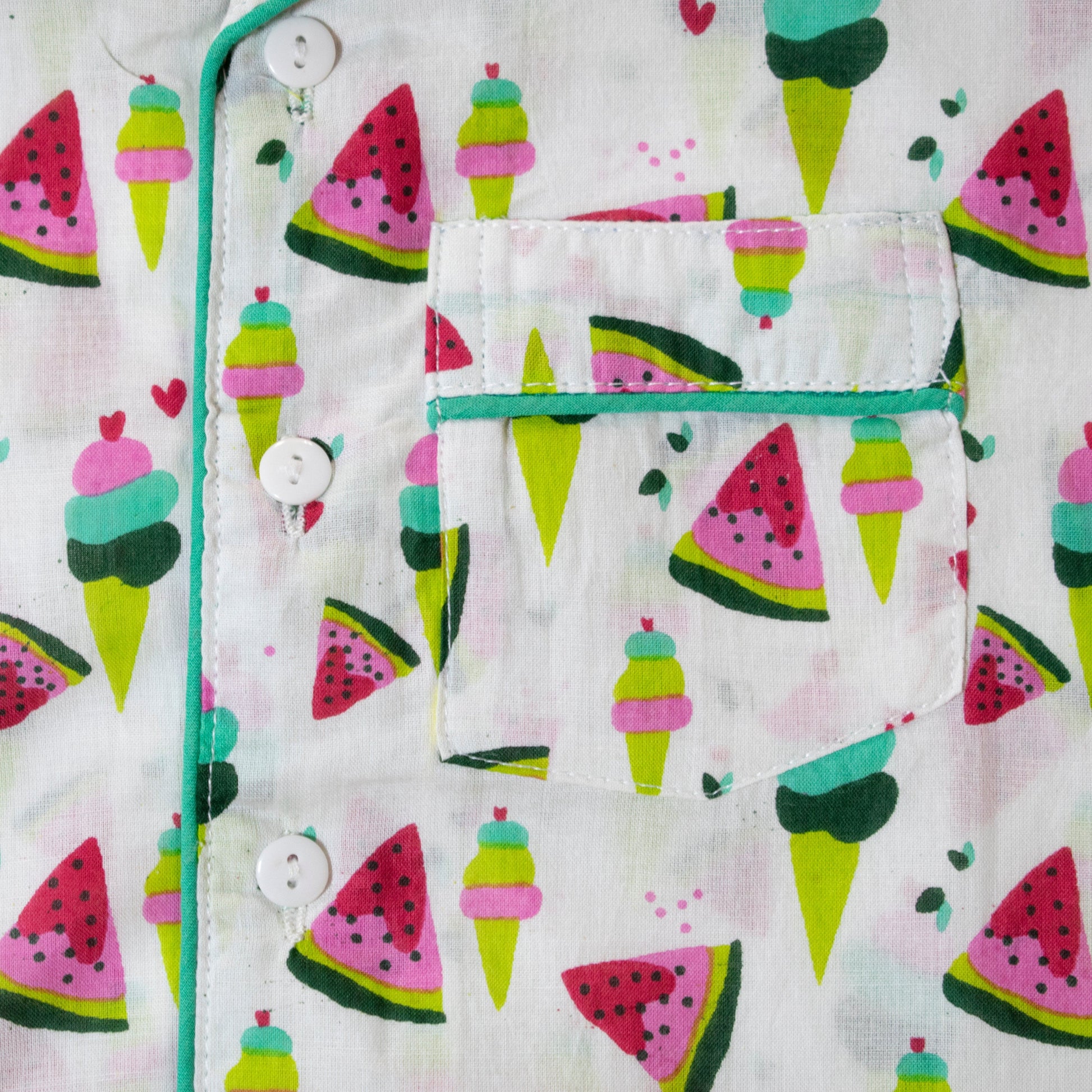 The bright and beautiful Watermelon and ice cream night suit for kids is a comfortable pick for your child.