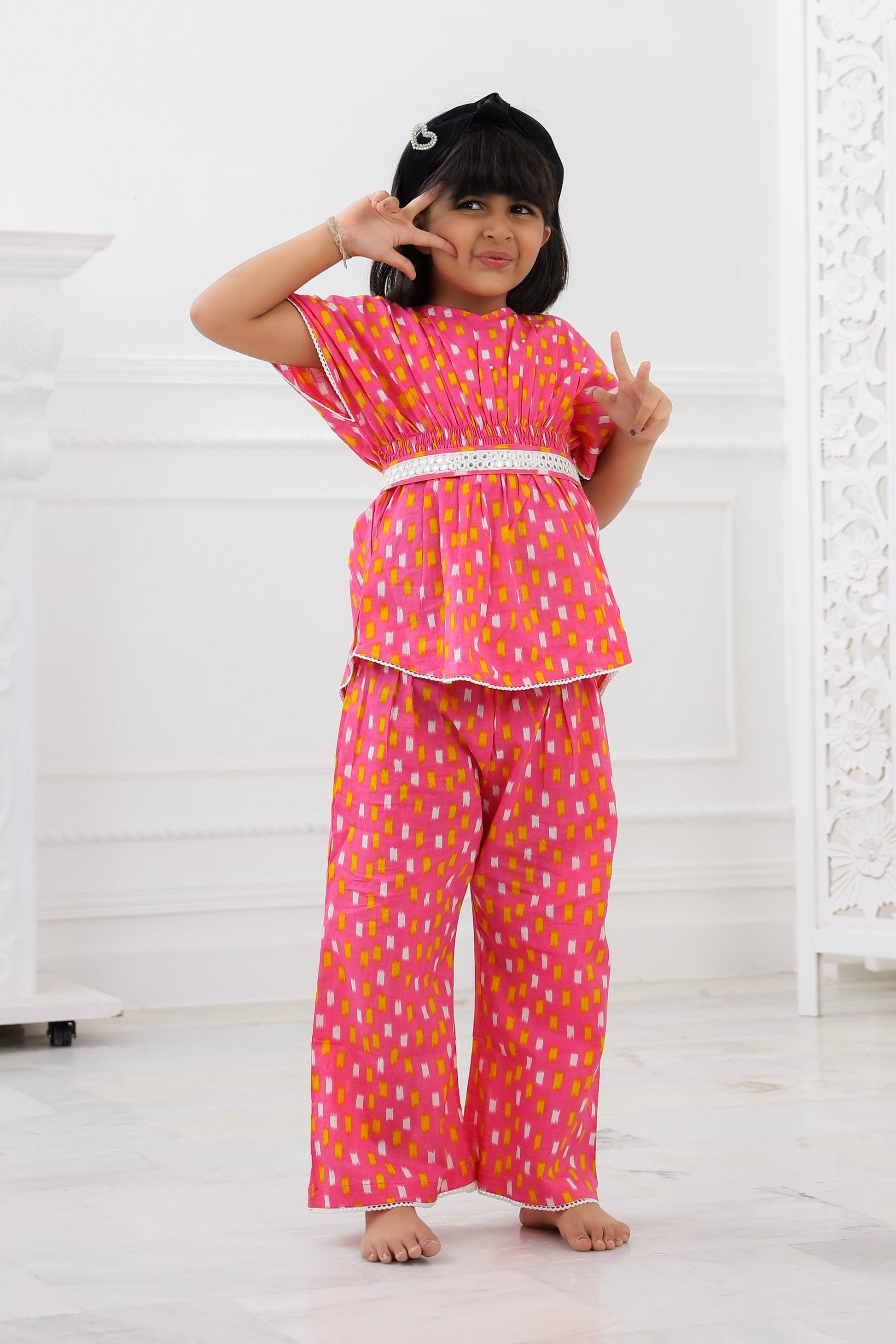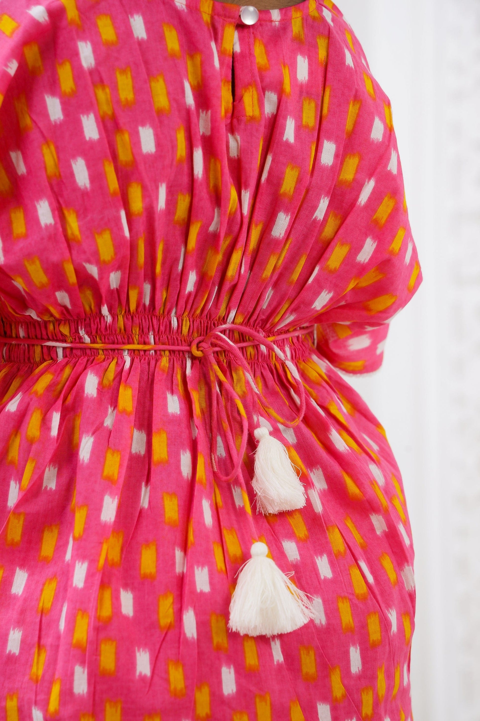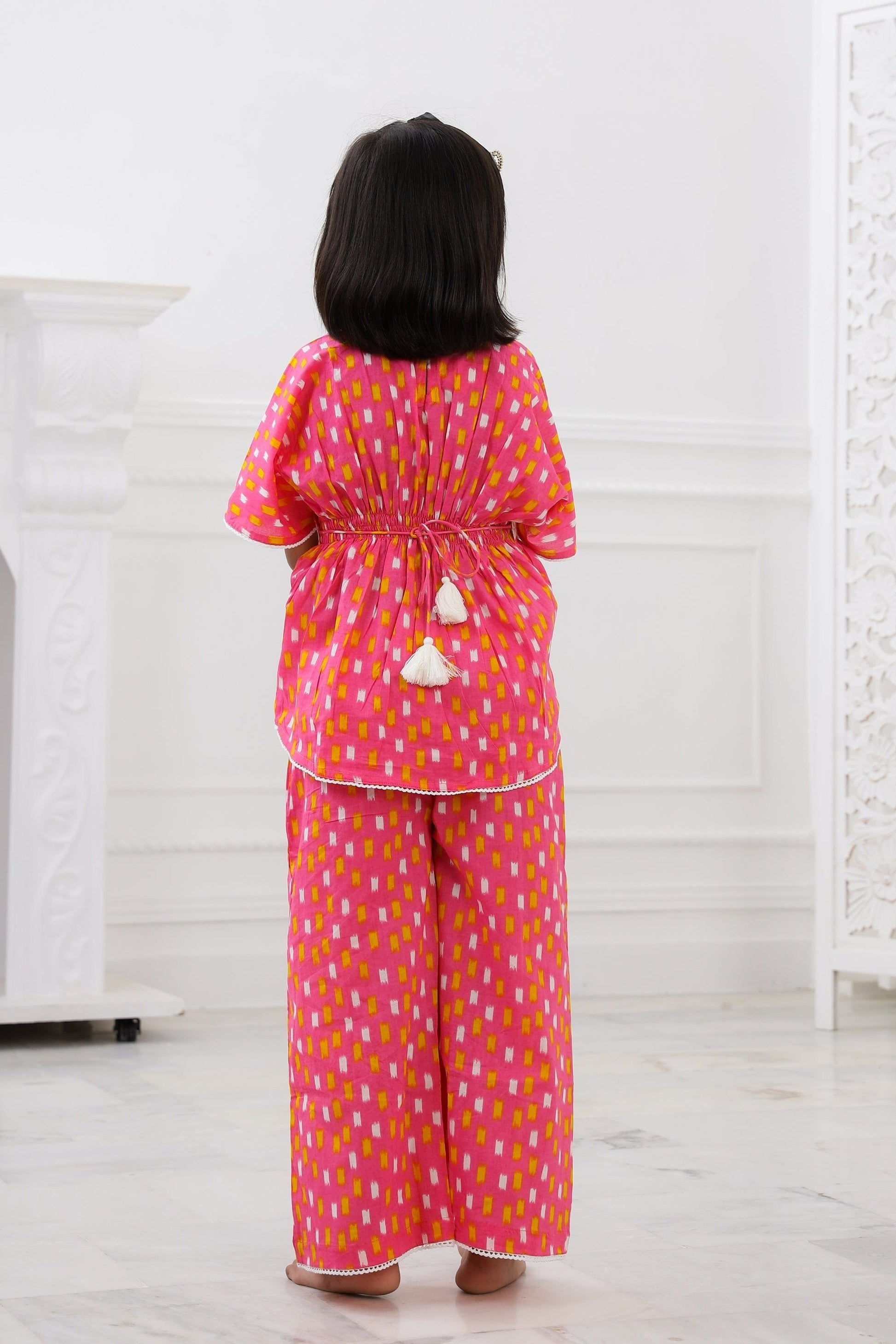 The Kaftan Set is a gorgeous set of two pieces, includes a white cotton lace on Kaftan sleeves, Kaftan flare & pant bottom. The elasticated kaftan with a belt & loop for belt and elasticized pants to match, it has a button at the back that can be made secure or open, as you wish!